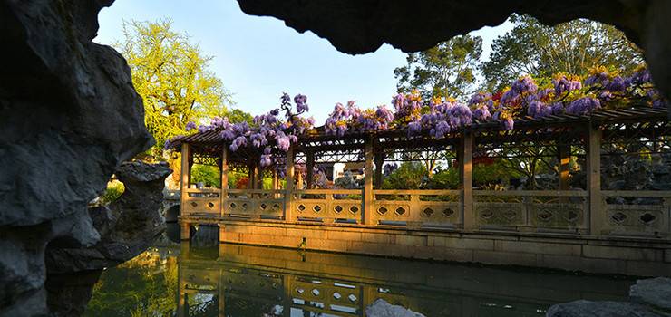 狮子林的假山堆山曲折复杂、精妙构思,连接成群后更是气势磅礴,太湖石经过工匠打磨后成为玲珑俊秀、洞壑盘旋的假山群。在其间时而穿洞,时而过桥,左绕右拐,来回往复,奥妙无穷。