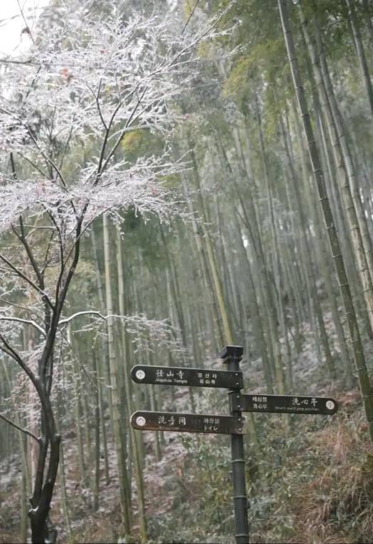 徒步的终点,亦是心灵升华的起点——径山寺。这座被誉为 “江南五大禅院之首” 的千年古刹,在冬日,尤其是雪后,会展现出震撼人心的绝美画卷。刹那永恒的雪域胜景:若遇降雪,便是莫大的缘分。飞雪悄然而至,为古寺的黛瓦、红墙、飞檐覆上皑皑白衣。寺内蜡梅凌寒绽放,冷香与雪色交织,古桥、石灯、匾额在雪的勾勒下,构成一幅静谧、庄严、充满禅意的“雪域佛国”盛景,让人仿佛一步穿越回唐宋-山顶的宁静时光:无论有雪与否,登临寺内至高点凌霄阁,俯瞰群山层叠,云雾缭绕,顿生“眼观万物,心归自然”的豁达。在寺中品一碗名声在外的罗汉素面,简单朴素的鲜美最能温暖身心。或于茶室临窗而坐,点一杯传承千年的径山茶,在茶香与隐约佛音中,让时光慢下来。