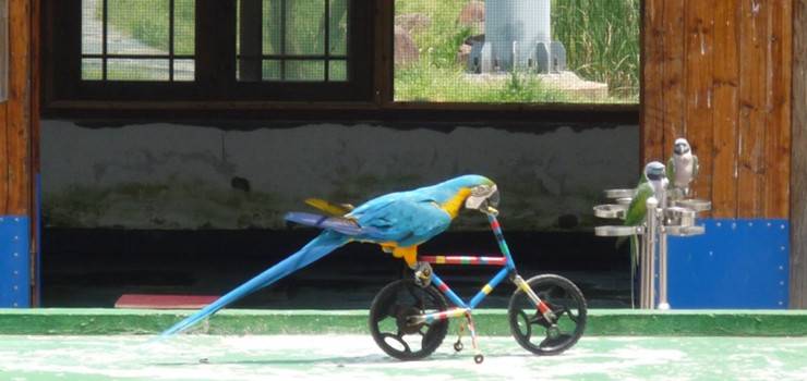 珍稀鸣禽园。许多鸟儿在这里飞来飞去,只闻其声不见其踪。鸣禽园里面还有一个鸟艺表演区,由多支鹦鹉组成表演队,为大家展示打篮球、骑自行车、捡易拉罐、跳舞、滚篮球、提水桶等节目,让人惊叹小小鹦鹉竟然有这么多绝活!